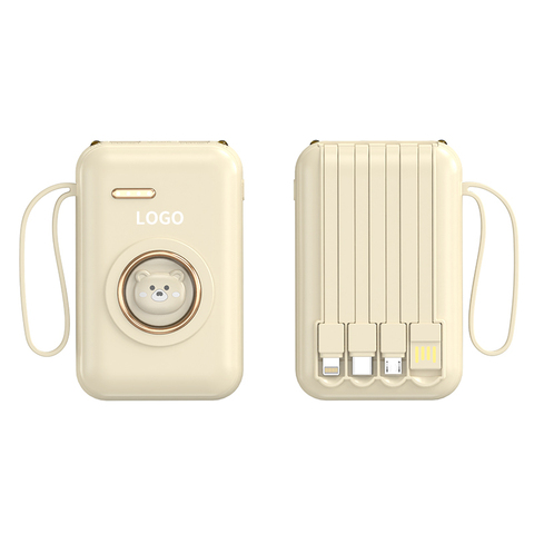 Mini banco de energía portátil de 10000mAh de dibujos animados lindo 4 en 1 con cable incorporado Regalo encantador para viajeros Carga móvil